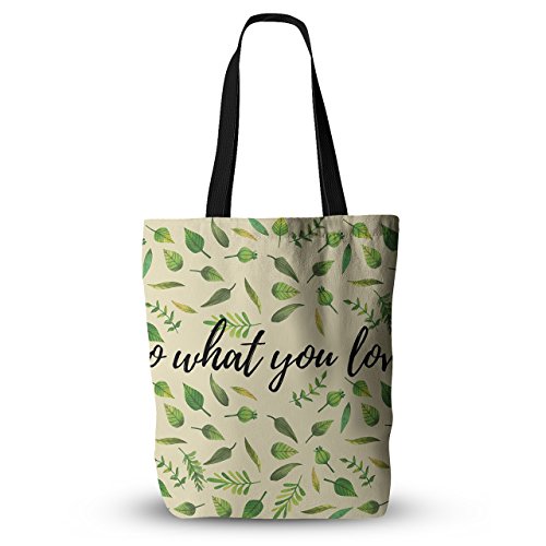 KESS InHouse Original "Do What You Love" Green Beige Everything Tote Bag, 18" x 18", Multicolor