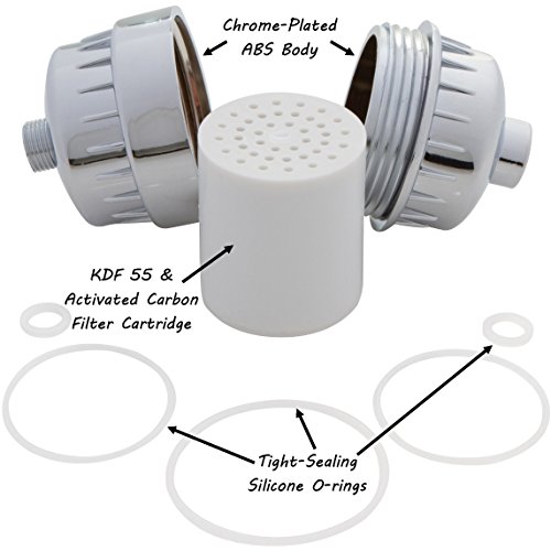 - Feature : SOFTENS HARD WATER - KDF 55 purification media rids water of heavy metals that stain your bathtub. / REDUCES CHLORINE - 90-95% reduction. Enjoy fewer flare-ups, fresh showers, and healthy, smooth skin. / REJUVENATES HAIR - Glide your comb/brush through your hair once again. Fewer tangles. Less damage. / INSTALLS QUICKLY - Just twist on! Clear, step-by-step instructions. Works with any shower head. / LASTS 6 MONTHS - ~12,000 gallons. Some report longer. But we guarantee 6 months or your money back.