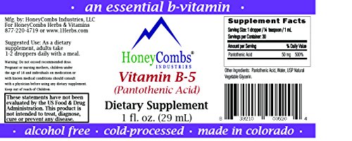 ★ PREMIUM LIQUID-EXTRACT - Vitamin B5 (also known as Pantothenic Acid) is one of the B-complex vitamins that help your body convert food into fuel and plays an important role to the production of red blood cells. HoneyCombs Industries is proudly to provide the highest and most pure Vitamin B-5 in liquid extract for better consumption. It's 100% alcohol-free and cold-processed to protect the essentials that can be destroyed by heat
