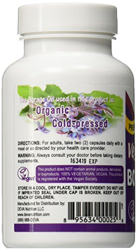 DEVA Vegan Vitamins Vegan Borage Oil 500 mg Vcaps, 90-Count Bottle