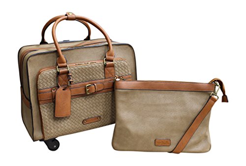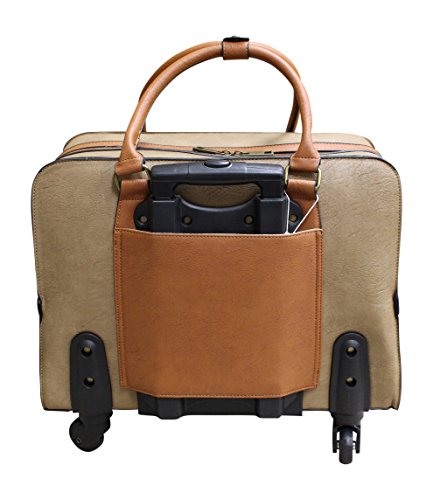 Product Description Take your business trip in style this season with Simply Noelle's Over Under Roller bag. Featuring 360-degree turning wheels, an adjustable pull-out handle, and plenty of space for all of your essentials, this bag is a must-have for all of your travel needs. Measuring at 18"L x 10"W x 13"H, you won't be lacking for a luxuriously spacious travel bag. Included with your new bag is a matching detachable laptop case, measuring at 16"L x 2"W x 11"H, and coming with a detachable shoulder strap for ease of use. Made with 100% polyurethane vegan leather, this roller bag is both stylish and eco-friendly! (Does NOT come with a key, the lock is a push DOWN to open lock!) 0