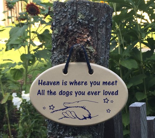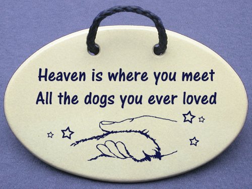 Heaven is where you meet All the dogs you ever loved. Introductory offer this new Amazon Prime saying, Ceramic wall plaques handmade in the USA for over 30 years.