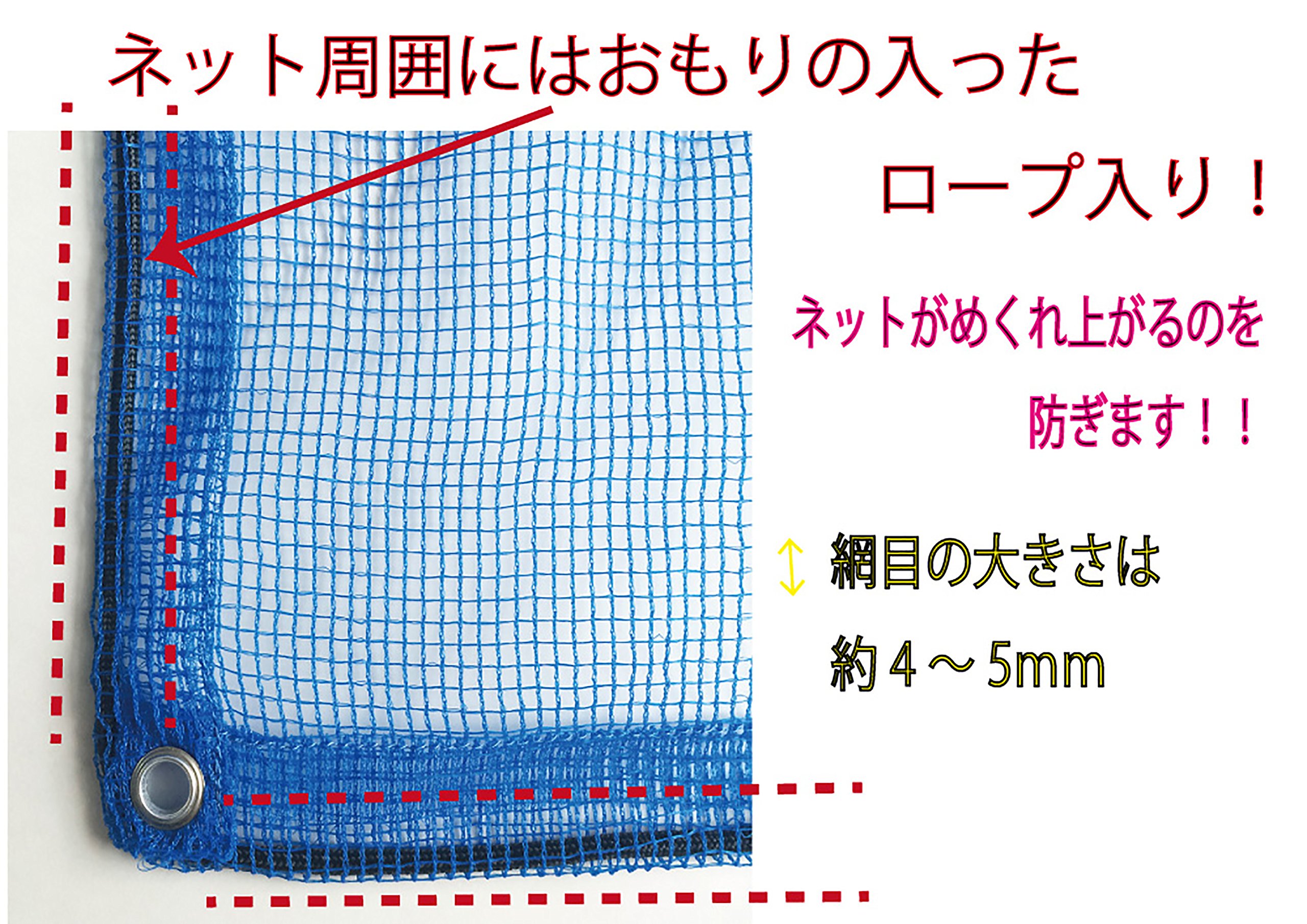Weighing rope enters around the net.