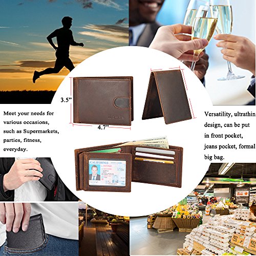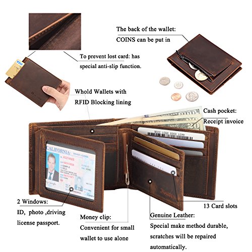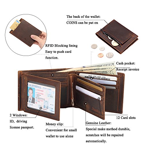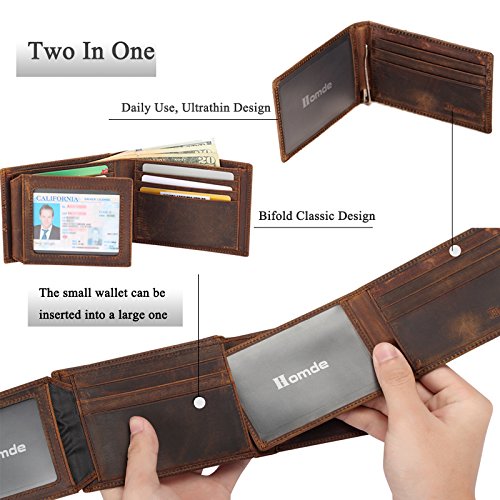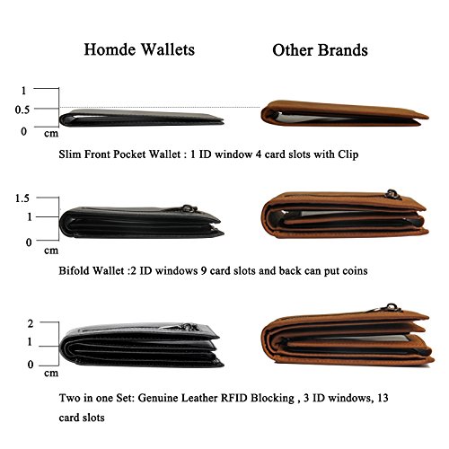 Product DescriptionProduct name: multi-function wallet.Brand: HomdeMain material: cowhide (RFID in lining)Size:Big purse : 4.72 " x 3.54" x 0.59"Small purse 4.13 " x 2.95" " x 0.2"0
