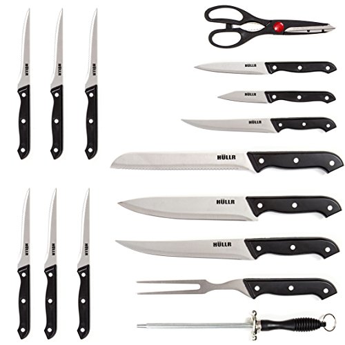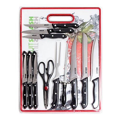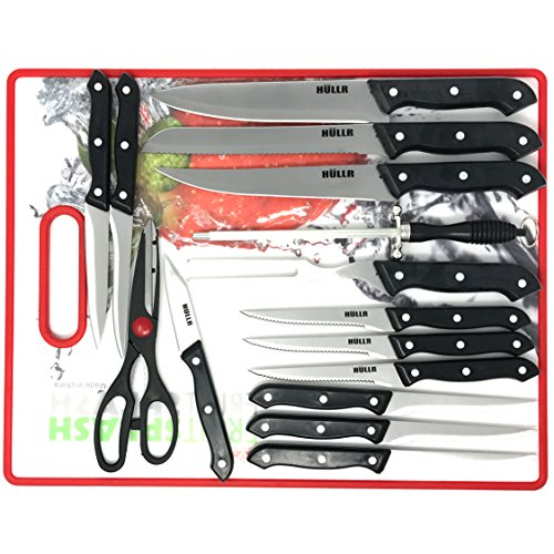 hullr 16피스 나이프세트내용:나이프 (칼 따위를) 갊,쉐프나이프,슬라이스 나이프,빵 나이프,로스트Fork,유틸리티 나이프,키친,시아,과일 나이프,부엌칼,중화 부엌칼,18?'' X 13?''커팅 보드는 완전히 임의의타입를 위해에 준비 조리장에서 내구성 이 뛰어난 이16피스쉐프나이프세트가 특징의 PP커팅 보드 나이프 매우 예리하고 금속제의 블레이드와 쾌적 핸들과 함께 다른 툴을 사용하는 것 를 할 수 있습니다.후루타《구》Ergonomic 튼튼한 ABS핸들이 쾌적하고 안전한 그립용 이 뛰어난 오름 탄소420그레이드의 스테인레스강의 블레이드 정밀도hullr Premium독일디자인와 이노베이션