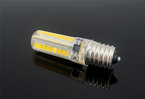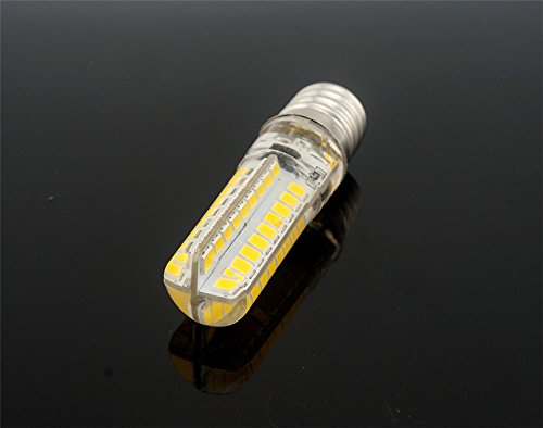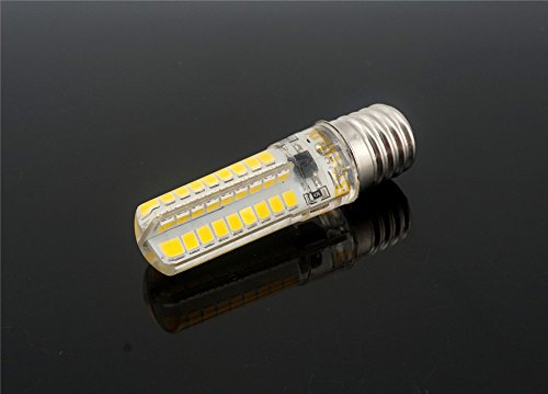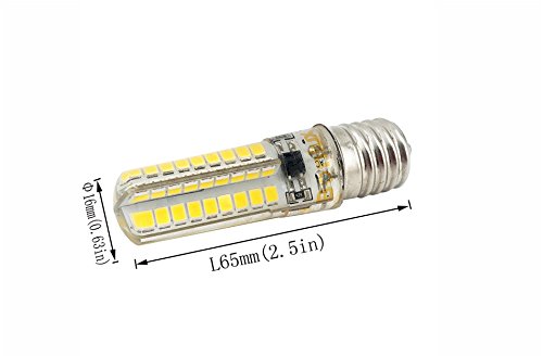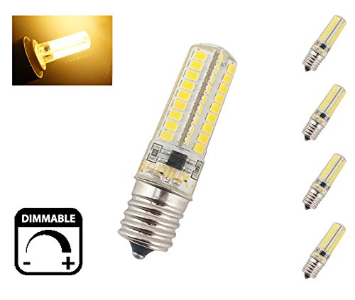 Dimmable E17 LED Light Bulb Specification: Dimension: φ16*65MM(D0.63XL2.5inches) Power: 5 Watts LEDs: 72pcs 2835 SMD Input Voltage: AC85-265v 50-60Hz Lumen: 450lm (40W halogen replacement) Light Color: Warm White 2800k Beam angle: 360 degree Lamp Base: E17 Lamp Shape: T3/T4 Materials: Silicone Coated Suggest use LED post-cut dimmers,LED bulbs maybe flicker or power decrease if use Incandescent dimmers Pack of 4 0