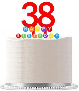 Item#038WCD - Happy 38th Birthday Party Red Cake Topper & Rainbow Candle Stand Elegant Cake Decoration Topper Kit