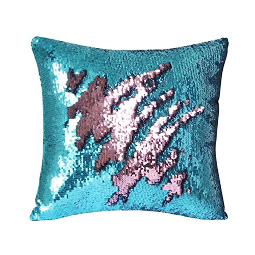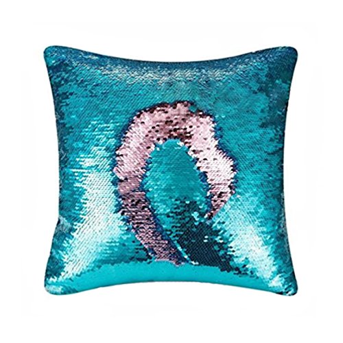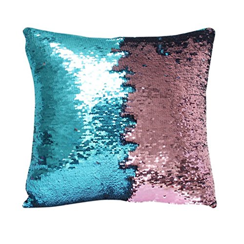 MISENSE Magic Reversible Sequins Mermaid Pillow Case 40X 40cm (Light blue and Pink)