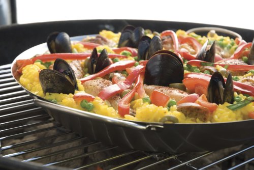 Originating in Spain, paella is a rich dish interpreted around the world using fresh regional ingredients. Paella is traditionally cooked in the open air over a hot crackling wood fire so that the dish can be infused with the smoke flavor. The Steven Raichlen Best of Barbecue Paella Pan is constructed of heavy stainless steel so that it takes kindly to high heat and vigorous spoon and spatula technique for the best soccarrat.....the crispy golden brown rice layer on the bottom. Stainless steel handles, 4-quart capacity.Feature