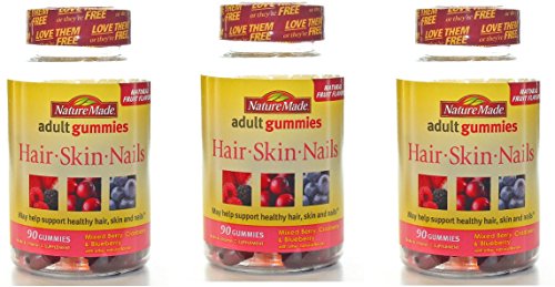 -. Feature : Nature Made Hair, Skin and Nails Adult Gummies Nature Made › Adult Gummies Nature Made Hair, Skin & Nails Adult Gummies are a delicious and convenient way to help support healthy hair, skin and nails‡, providing 2500 mcg of biotin and 100 mg of vitamin C in two delicious gummies.
