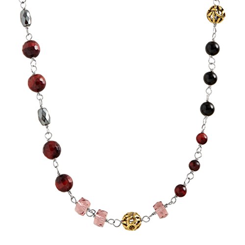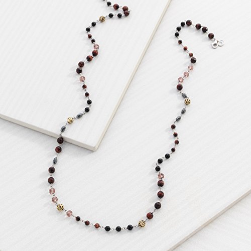 -. Feature : This long beaded Burgundy Blush Necklace from the Sterling Silver Collection is a must-have layering piece and can add a feminine touch to any look featuring a mix of red, blush and black beads, totaling 92 1/3 ct, strung with sterling silver links around the chain / MIX OF CULTURE: Cultural influences can be found everywhere you look - from building architecture to your favorite restaurant or song - and now, your favorite piece of jewelry. Mixing metals, materials, tones and textures allows jewelry to tell a narrative. Let this collection, filled with ornate detailing and organic designs, tell your story. / AGATE: Creatively striped by nature, each stone is guaranteed to be one-of-a-kind HEMATITE: Spiritually known to ground, stabilize, and protect, hematites range from red to metallic black in the color spectrum RED TIGER'S EYE: These deep, burgundy-red stones maintain an impressive natural reflective nature / BRASS & STERLING SILVER: The combination of copper and zinc gives brass a soft, yellow glow and its malleable nature makes it an artisan favorite; when this golden-hued metal is used alongside Silpada's signature metal of sterling silver, it creates breathtaking antiqued or mixed-metal looks / Necklace measures 37 inches in total length, finished with a lobster clasp