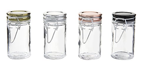 Kinetic GoGreen Glassworks Copper, Chrome, Gold, Onyx Style 4Piece Glass Jar Storage Set; 2.37 oz. Each 57156, Clear