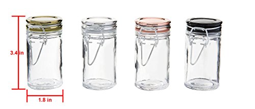 - Size-set includes 4 glass jars of 2.37 oz each. (1.8 inch x 1.8 inch x 2.6 inch each)