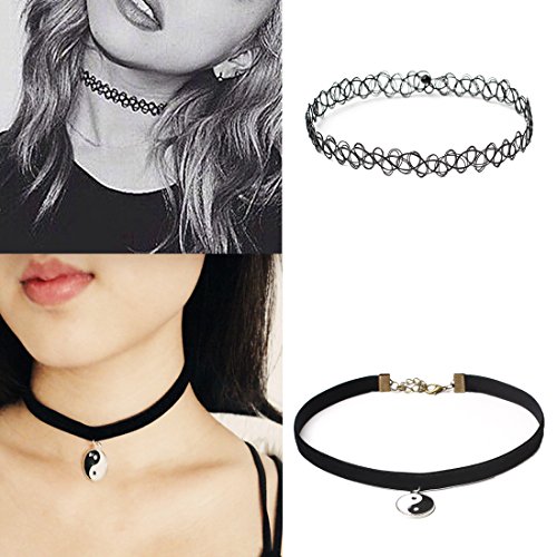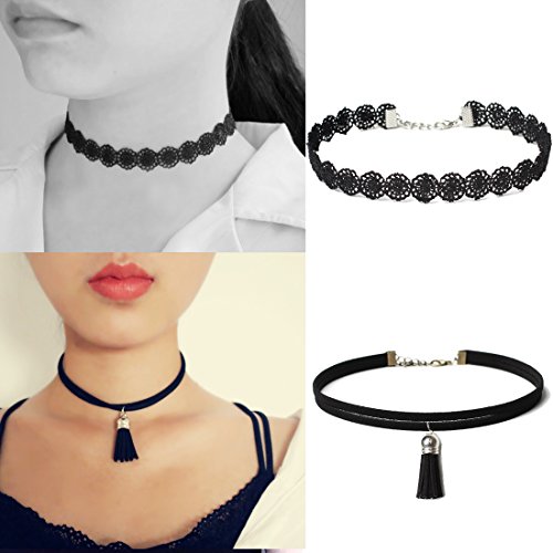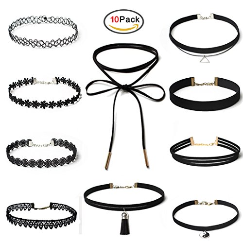 10PCS Black Choker Necklace Set Chokers for Women Girls Tattoo Velvet Lace Cute Punk Steampunk Gothic Classic Stretch Choker Necklaces