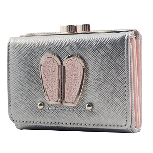 -. Feature : ★Gold hasp closure / ★Glitter bunny ears decoration / ★4.17(L)x2.83(W)x1.2(H)inches / ★Mini size, Soft PU leather, adorable design / ★1 Coin pocket, 1 photo holders, 1ID window, 1note compartment, 11 card holders
