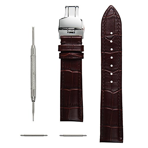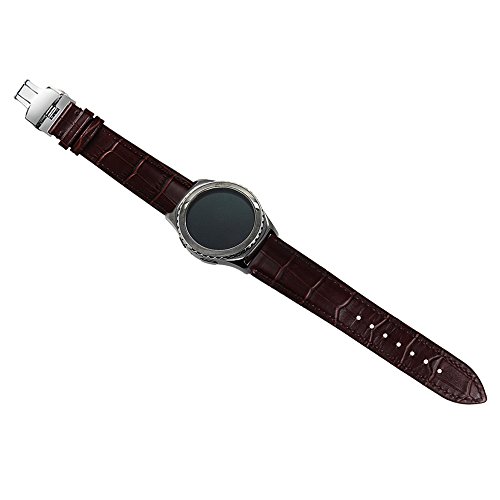 Gear S2 Classic Bands V-Moro Genuine Leather Crocodile Pattern Replacement band with Clasp Butterfly Buckle For Samsung Gear S2 Classic Smart Watch (Crocodile Pattern Leather Brown)