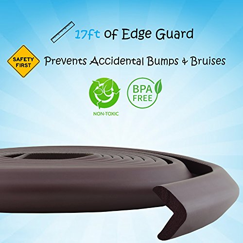 BABY PROOFING TABLE EDGE PROTECTOR covers the sharp edges, and corners of your tables. INCLUDES 17ft of edge guard, 8 pre-taped corner guards, and two sided foam adhesive