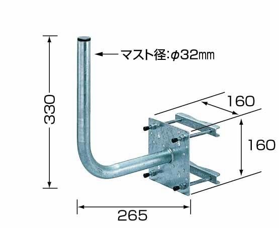 アンテナの取り付け時に使用する金具です。 製造国:中国 素材・材質:溶融亜鉛メッキ処理 商品サイズ:265×330mm 重量:1.96kg 仕様:50cm以下はさみ込み寸法:20~100mm最大幅寸法:100mmマスト径:φ32mm※お届け地域により、別途運賃がかかる場合やお届けできない場合がございますので、お問い合わせ下さい。
