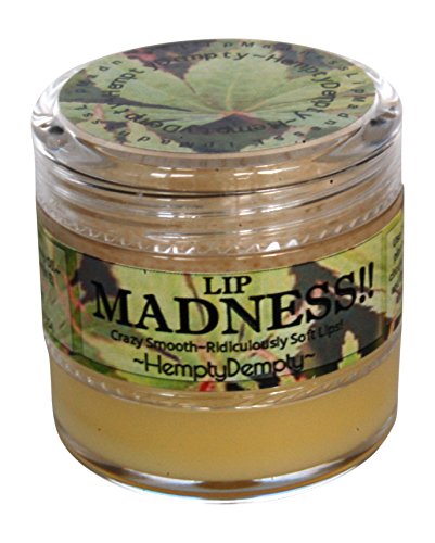 HEMPTY DEMPTY - By Lip MADNESS!! Crazy Smooth, Ridiculously Soft, Beautiful Lips!! With Organic Hemp Oil Rich in Vitamin A, C and E! 2 Lip MUST-HAVE'S in 1 CONVENIENT JAR! Organic Sugar Scrub on Top, Organic Balm on Bottom - Gently And Effectively Exfoliates and Smooths Lips, Then Seal The Deal with Organic Hemp Oil Balm! Say "GOODBYE" Dry Cracked Dull Lips - and "HELLO" to Smooth, Full, Beautiful Lips NATURALLY! 100% Natural Ingredients - NOTHING ARTIFICIAL! All Ingredients Natural and Pure: Organic Sugar, Organic Coconut Oil*, Organic Castor Seed Oil*, Organic Avocado Oil*, Organic Hemp Seed Oil, Organic Shea Butter*, Organic Mango Butter*, Pure Expeller-Pressed Safflower Oil, Pure Beeswax, Pure Lanolin, Natural Nag Champa Oil (or as we call it "Just a Hint Of Headshop!") *Natural SPF Ingredient! Exfoliating your lips regularly increases circulation and lips become naturally more colorful, smooth and defined. Seal in the moisture with the conveniently located balm and voila'! Smooth, beautiful, full lips in less than 2 minutes!Feature