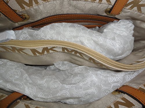 -. Brand : -. Color : Beige, Camel, Tan -. Department : womens -. EAN : 0887042381423 -. Feature : Beige & camel MK signature block logo P.R.Int jacquard with tan leather trim and golden tone hardware / Lined interior with center zippered wall compartment / Inner zippered pocket, 4 open slip pockets and key fob; Side gusset pockets / Dual leather straps with a drop of about 9" / Measures approximately 12" (L) at the bottom tapering to 15" (L) at the top x 10.5" (H) x 5.5" (W) -. Model : 30S11TTT4J -. PackageQuantity : 1 -. ProductGroup : Shoes -. ProductTypeName : HANDBAG -. Size : Medium -. Title : East West Signature Tote MK Signature Jacquard Beige, Camel & Tan -. UPC : 887042381423