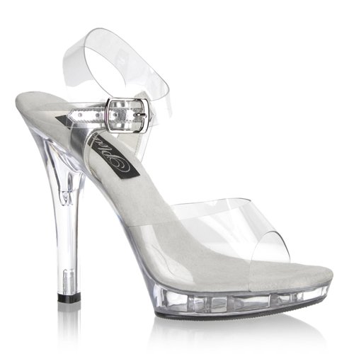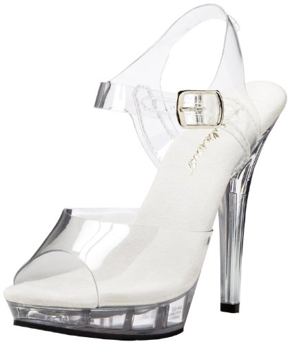 Amazon.com Pleaser presents a seductive, grown-up version of Cinderella's glass slipper with this sexy, mile-high Lip platform. It has a clear vinyl upper with a flash of metallic sass on the adjustable ankle strap, a grippy rubber outsole, and a sueded, cushioned insole so you'll be comfortable as you're working that sexy stride. The best part? You won't have to be home by midnight, we promise! 0