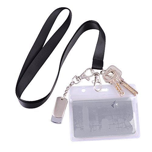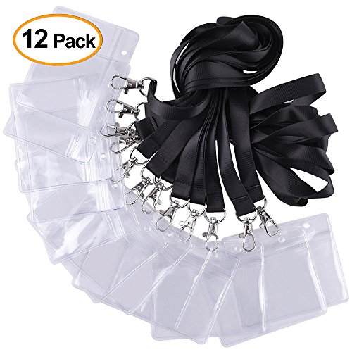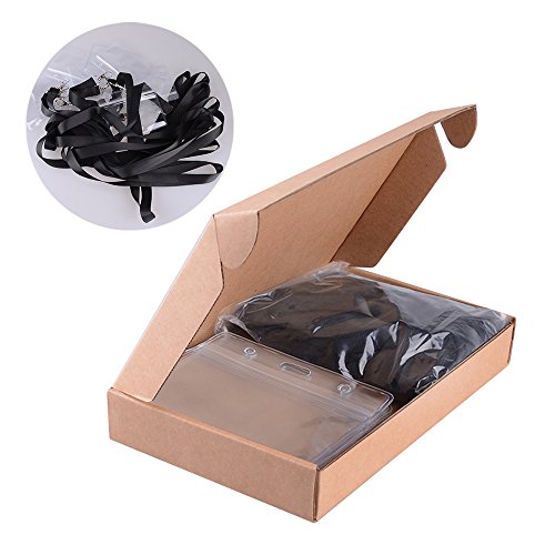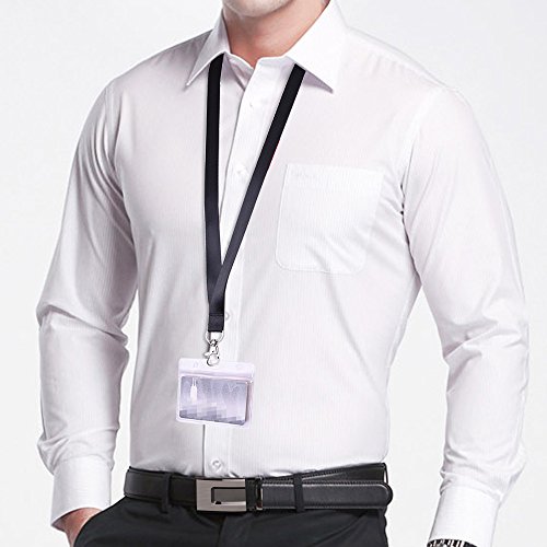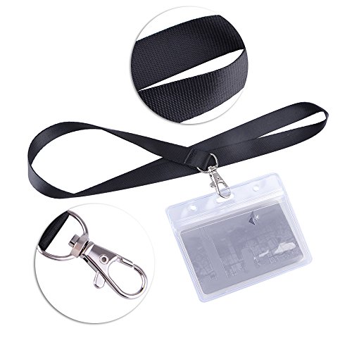 Kuuqa Pack of 12 Horizontal Strap Badge Holder with Black Lanyard