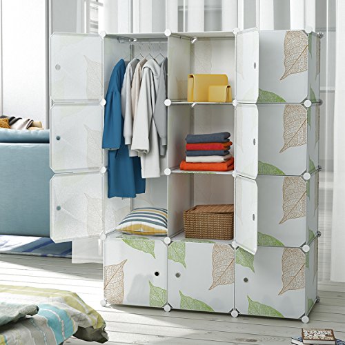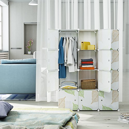 Tespo Portable Clothes Closet Wardrobe Cabinet Bedroom Armoire Storage Organizer with Doors, Capacious & Sturdy Deeper White Cubes