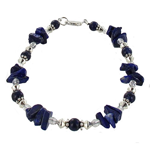 -. Title : Womens Lapis Lazuli, Czech Crystal Glass & Sterling Silver Ladies Beaded Gemstone Anklet with Daisies