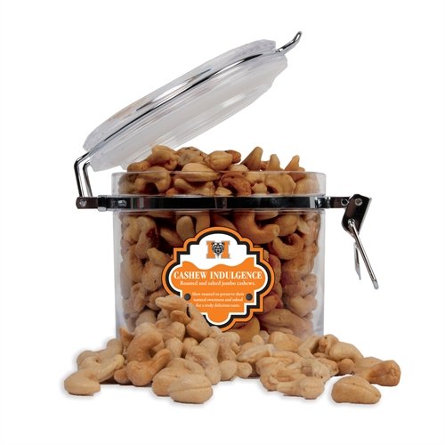 -. Feature : Plastic / Decorative decal w/logo / With old-fashioned charm, the round canister with snap secure lid keeps your cashews fresh and makes for endless uses once they are gone / Canister is eco-friendly and shatterproof / Dimensions: 5 H x 4-3/4 W