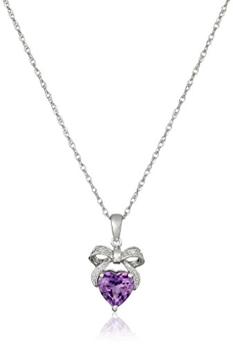 -. Binding : Jewelry -. Brand : Amazon Collection -. Color : Silver -. Department : womens -. Feature : Rope chain with sP.R.Ing-ring clasp / The natural properties and composition of mined gemstones define the unique beauty of each piece. The image may show slight differences to the actual stone in color and texture. / Gemstones may have been treated to improve their appearance or durability and may require special care. / All our diamond suppliers confirm that they comply with the Kimberley Process to ensure that their diamonds are conflict free. / Imported -. Label : JPI -. Manufacturer : JPI -. Model : 68857PT-Parent -. MPN : 68857PT-Parent -. PartNumber : 68857PT-Parent -. ProductGroup : Jewelry -. ProductTypeName : FINENECKLACEBRACELETANKLET -. Publisher : JPI -. Studio : JPI -. Title : Sterling Silver Gemstone and Diamond Accent Bow Heart Pendant Necklace, 18"