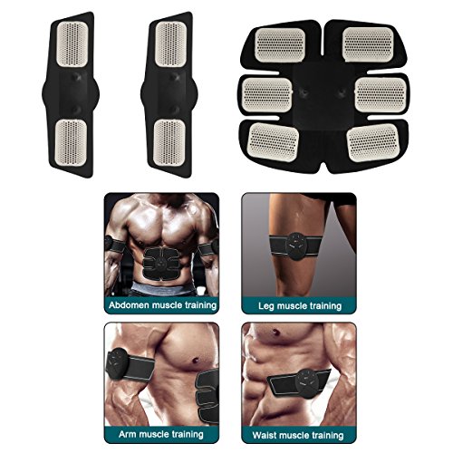 ?Each EMS machine can be individually adjusted mode and intensity.You can also use 3 abdominal muscles posted simultaneously, to adjust the required mode and intensity respectively. ?Adopting EMS technology, EMS (Electrical Muscle Stimulation), which builds muscles through the skin, it is recognized as an effective method of training muscles. ?It is suitable for abdomen, arms, waist and legs. With 6 exercise modes.High quality abs gel sheet, conductivity improves 30%. ?Ultra thin and compact. You could get away with wearing this underneath a sweater if you wanted at work and no one would know it's there, you can do muscle trainning in office, bedroom, or any place you want. Not just in gym. ?Easy to Use! Designed with ergonomics targeting abdominal muscle exercise. Fix the fitness gear to the position where you want to strengthen your muscle. Just press the button to start the exercise.