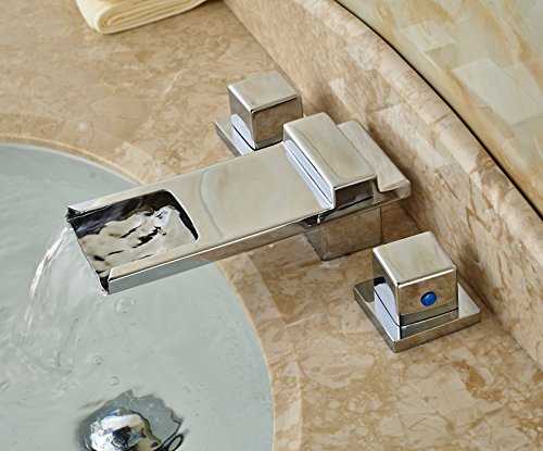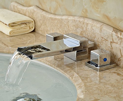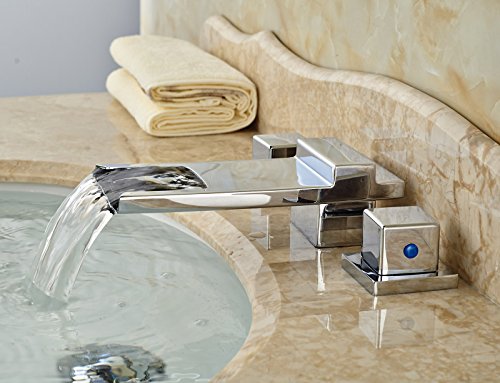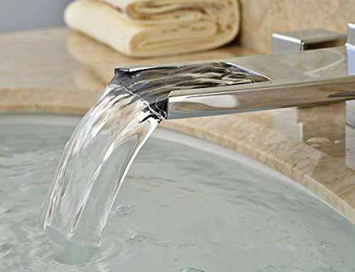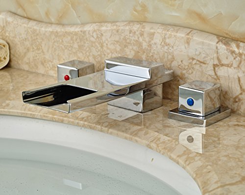 -. Title : Rozin Widespread 3 Holes Bathroom Sink Faucet Waterfall Spout Dual Handles Mixer Tap