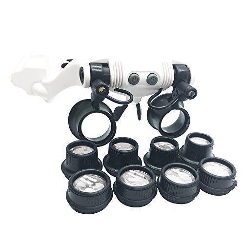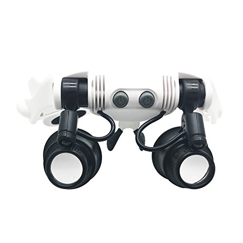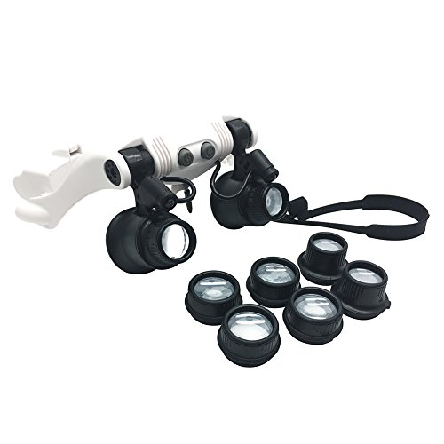 Head Wearing Magnifying Lens,GenLed Head-Worn Glasses Magnifier 10x 15x 20x 25x LED Double Eye Jeweler Watch Repair Magnifying Eyeglasses Loupe Electronic Repair, Jewelry Appraisal