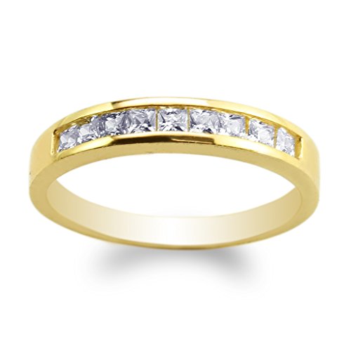 -. Title : JamesJenny Womens Yellow Gold Plated Simple Channel P.R.Incess Cut CZ Ring Size 4-10