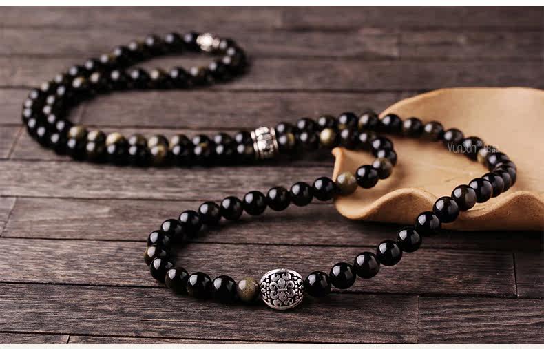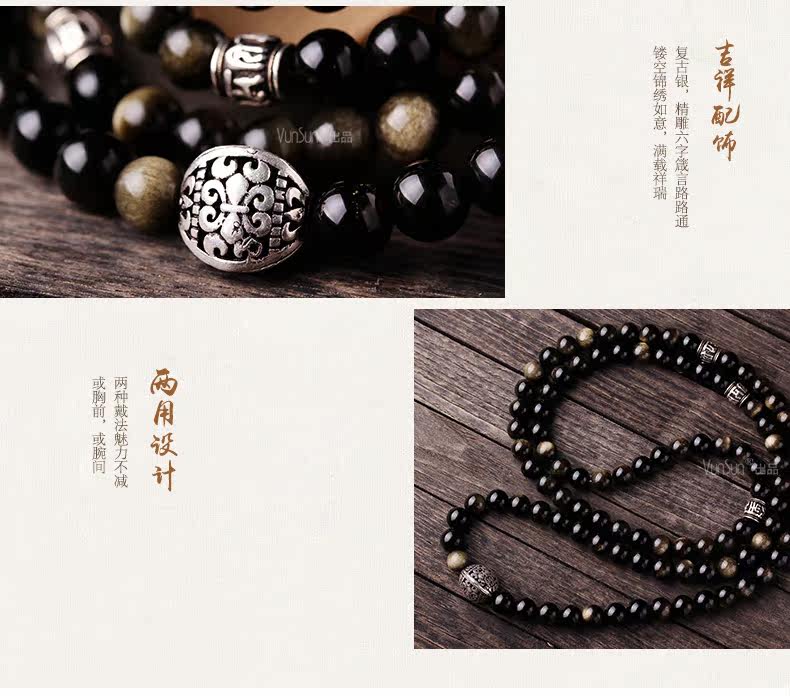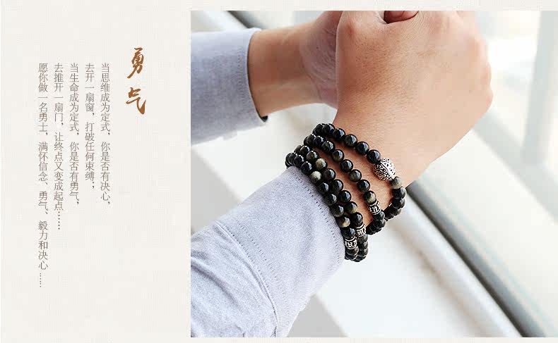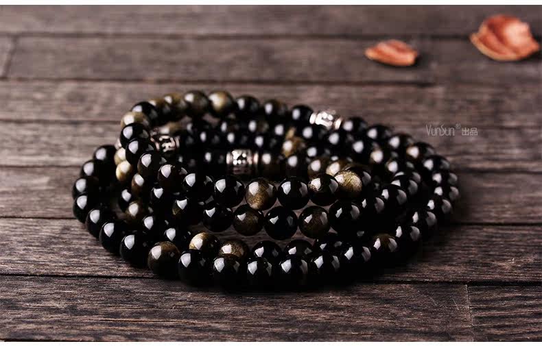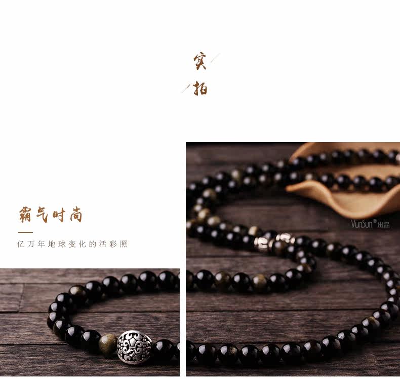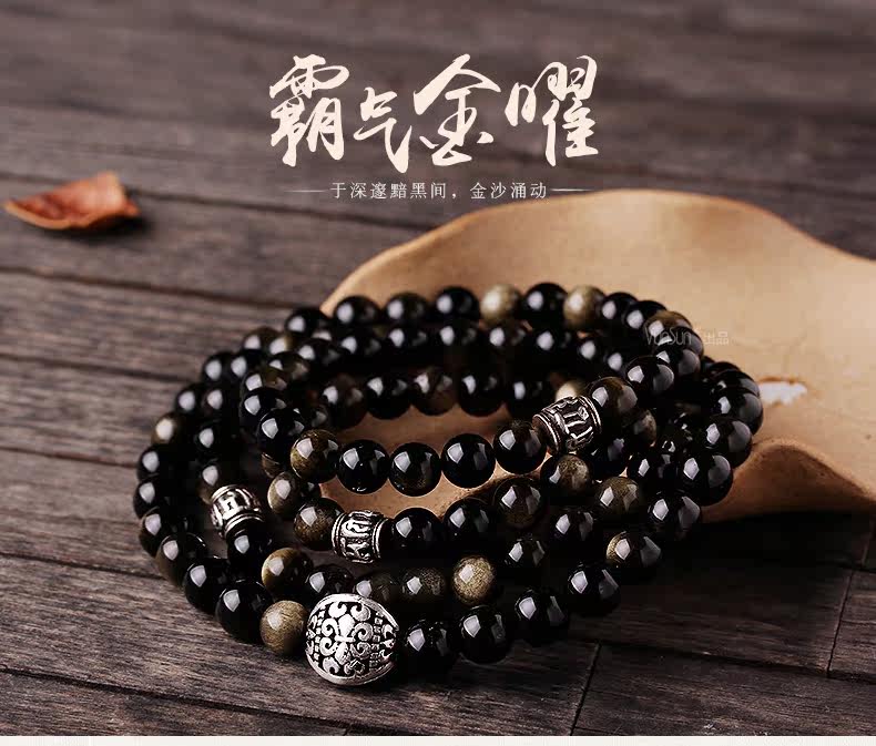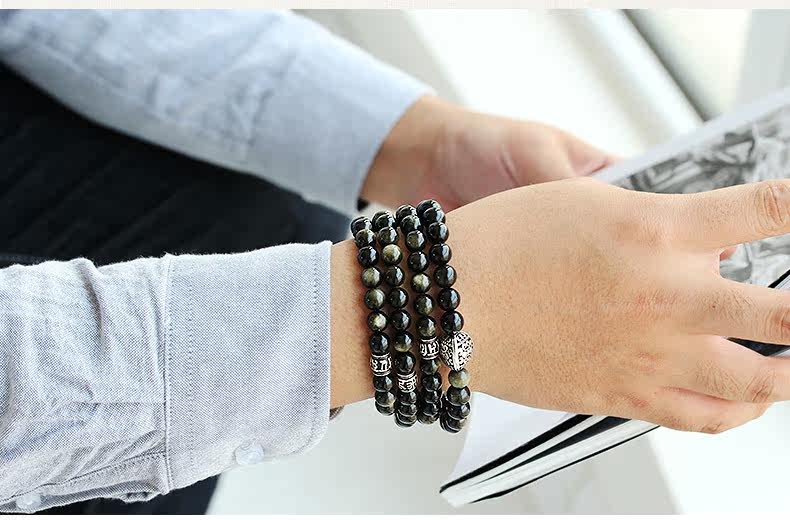 天然黑曜石手链 男款 金曜石多层缠绕手串 民族风 人气饰品