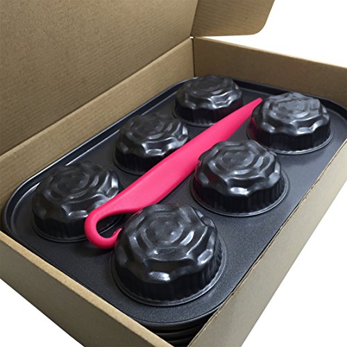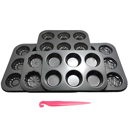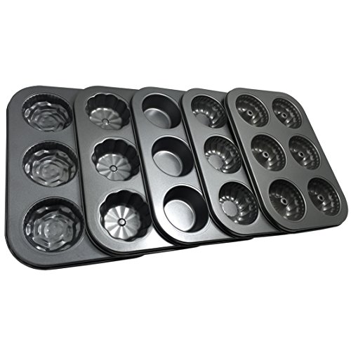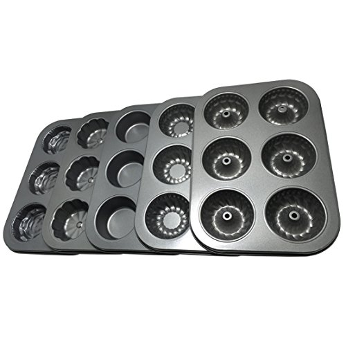 - Feature : These five pans are just the right size for the Farberware® toaster oven and are ideal for a variety of recipes for breakfast, lunch, dinner, dessert and any snack in between. / This bakeware set features nonstick on the inside and outside for impressive food release and simple cleanup. / Heavy gauge carbon steel helps to heat evenly, so baked goods have uniform browning with each use. / These pans are oven safe to 450°F and are especially designed to be used with the versatile Farberware toaster oven. / The same size of 26.8*18.7*2cm, but different cup shapes. A Depanner included as a gift which helps you easy to release.