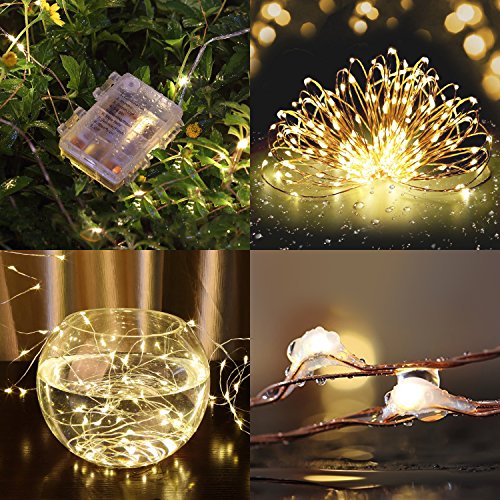 - 100% waterproof -- Both string lights are fully sealed, thus making the copper wire parts submersible, and the battery case is waterproof for outdoor use, feel free to put them into your water fountain to create amazing water scene.The insulated copper wire keeps the lights at a low temperature so they are safe to without risk after many hours of use.
