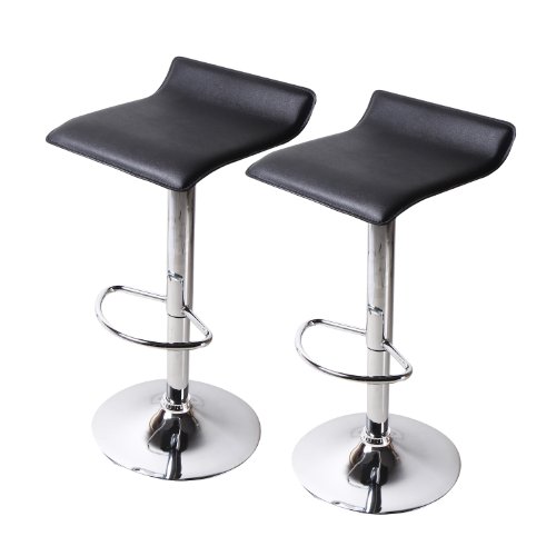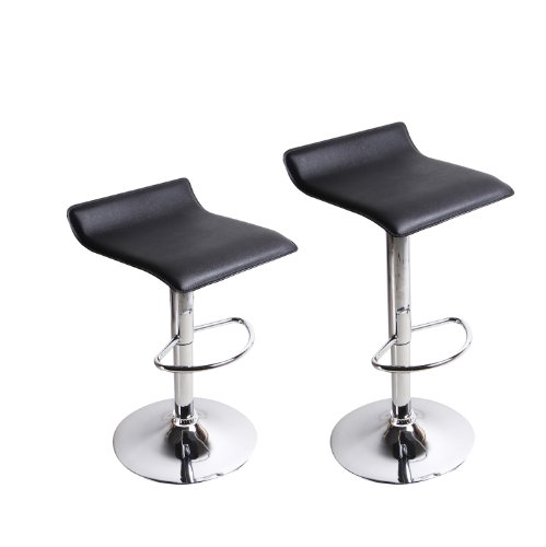 Black Hydraulic Lift Cushioned Adjustable Barstool, Micro Back Vinyl Covered, Chrome Finish Pedestal Base (Set of two)