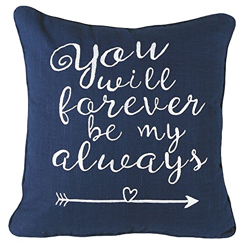 YugTex Pillowcases You will forever be my always Embroidered Throw Pillow Cover Gifts for her women Quote Decorative pillowcase Wedding Anniversary Couple Lovers Cushion Cover (18"X18", Navy)