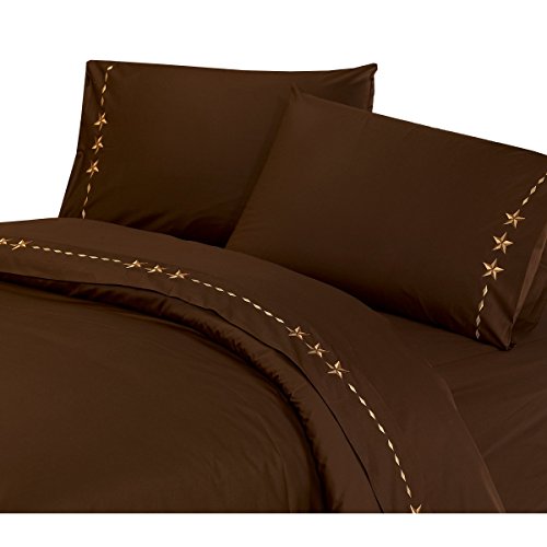 HiEnd Accents Western Embroidered Star Sheet Set, Twin, Chocolate