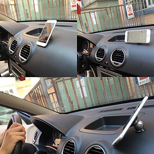 360 DEGREES RORATION - You can use this car mount as an auto iPhone holder or a navigation holder in your car dashboard and you can adjust your device in any view angle without blocking your view. You can place your device on mount metal plate in portrait mode, or landscape mode. This mobile phone holder is accessible to all function areas on your phone. Never put yourself in danger while driving. Smart and Flexible cell phone holder