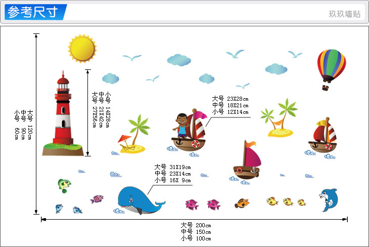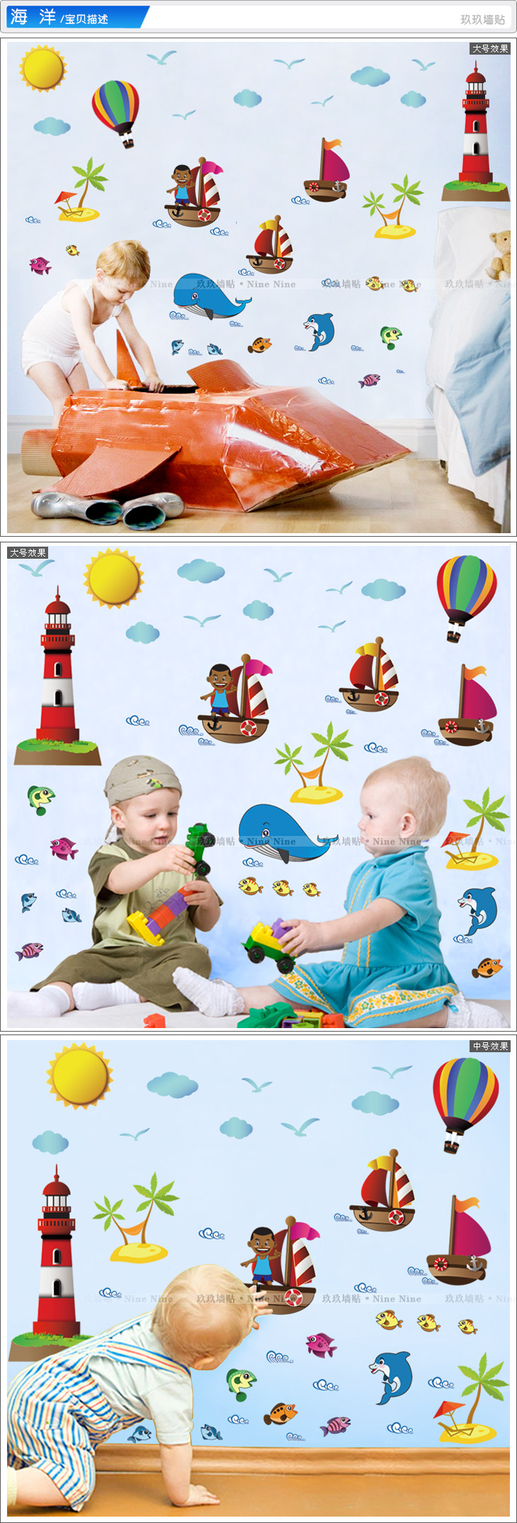 幼儿园儿童房教室海洋馆布置卡通墙贴海洋世界卫生间浴室装饰贴纸