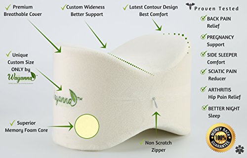 Studio : The Wayanna Collection LLC Publisher : The Wayanna Collection LLC Product Description CONTOURED WEDGE KNEE PILLOW The Wayanna Collection is proud to offer you our exclusive contoured knee pillow for lower back pain, sciatic nerve relief, and joint pain. This high quality cooling memory foam pillow firmly supports your knees and legs while assisting in the alignment of your spine and hips and helping to improve your posture. Pillows are ideal for a calming better night's sleep and pain free morning for anyone struggling with joint, back, and hip pain. ERGONOMIC MEMORY FOAM SUPPORT Our knee pillow's cooling and breathable memory foam construction consists of a multilayered contoured memory foam structure which has been ergonomically designed to shape, contour, and support your entire body while providing orthopedic and chiropractic joint and spine relief. SIDE SLEEPER MATERNITY PILLOWS Our wedge, side sleeping pillow is ideal for pregnant women looking for natural sleep relief or anyone recovering from surgery or physical therapy. The form fitting bolster pillow helps to aid blood circulation, relieve muscle pains, and improve spinal alignment while improving sleep habits and overall restfulness SOFT WASHABLE COVER TRAVEL BAG Each of our knee pillows comes with a machine washable soft, quilted, and custom fitted cover with easy grasp zipper closures. Each pillow also comes with a convenient canvas travel bag that's perfect for storage or to pack pillow on car trips, flights, vacations, and business travel. HIGHEST QUALITY MATERIALS Each pillow is made with the highest quality 100% hypoallergenic contour memory foam is both soft and supportive and is made with the longest lasting most durable materials available. Finally a solution to sleepless nights and lower back pain is here with The Wayanna Collection breathable memory foam knee pillow. - Breathable memory Foam Pillow - Machine Washable Quilted Cover - Convenient Travel Storage Bag 0