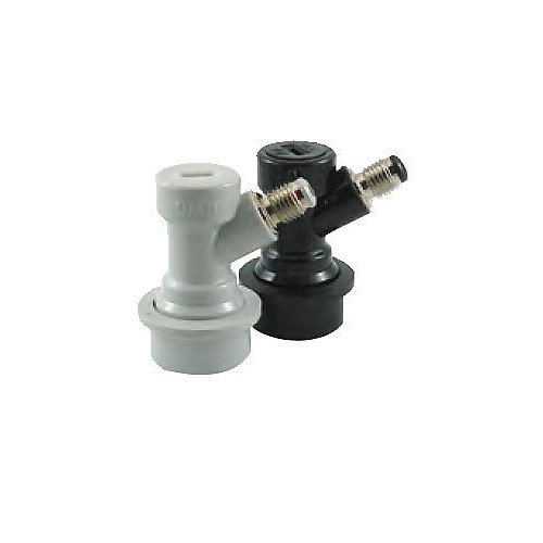Product Description This is a set of two Ball Lock Home Brew Keg Connectors for Becker kegs. This set includes both a gas in and beer out coupler with 1/4" Barb Connections. 0