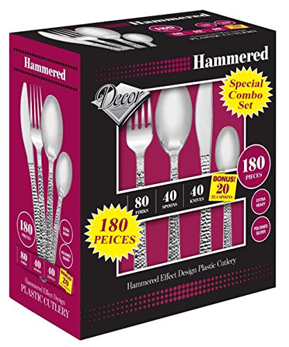 buyNsave Heavy Weight Plastic Elegant Disposable Silverware, Forks, Spoons, Knives, Tea Spoons, Combo Box 180 Peices Hammered