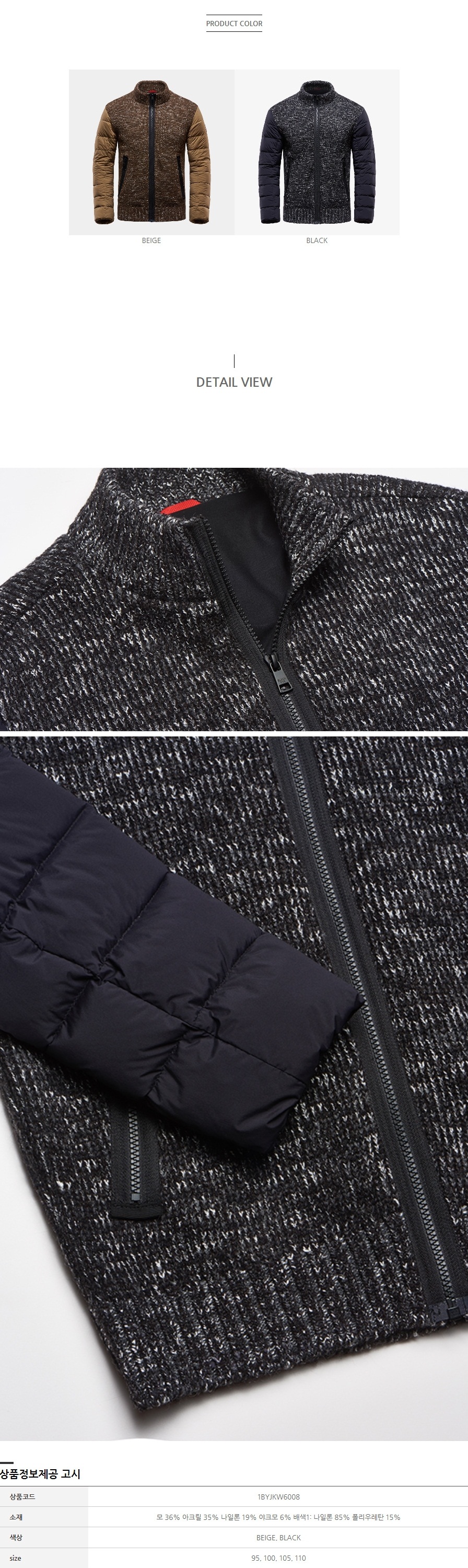 스웨터 형식의 자켓으로 겉면은 스웨터이지만