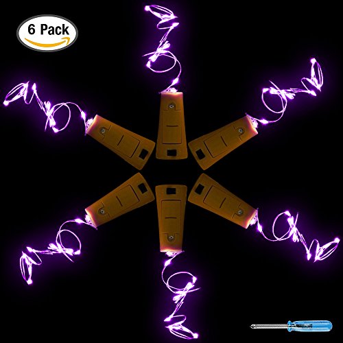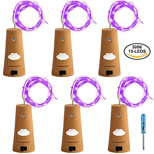 6 Pcs Cork Lights with Screwdriver, AFUNTA Bottle Lights Fairy String LED Lights, 30 Inches Copper Wire 15 LED Bulbs for Party Wedding Concert Festival Christmas Tree Decoration -Purple