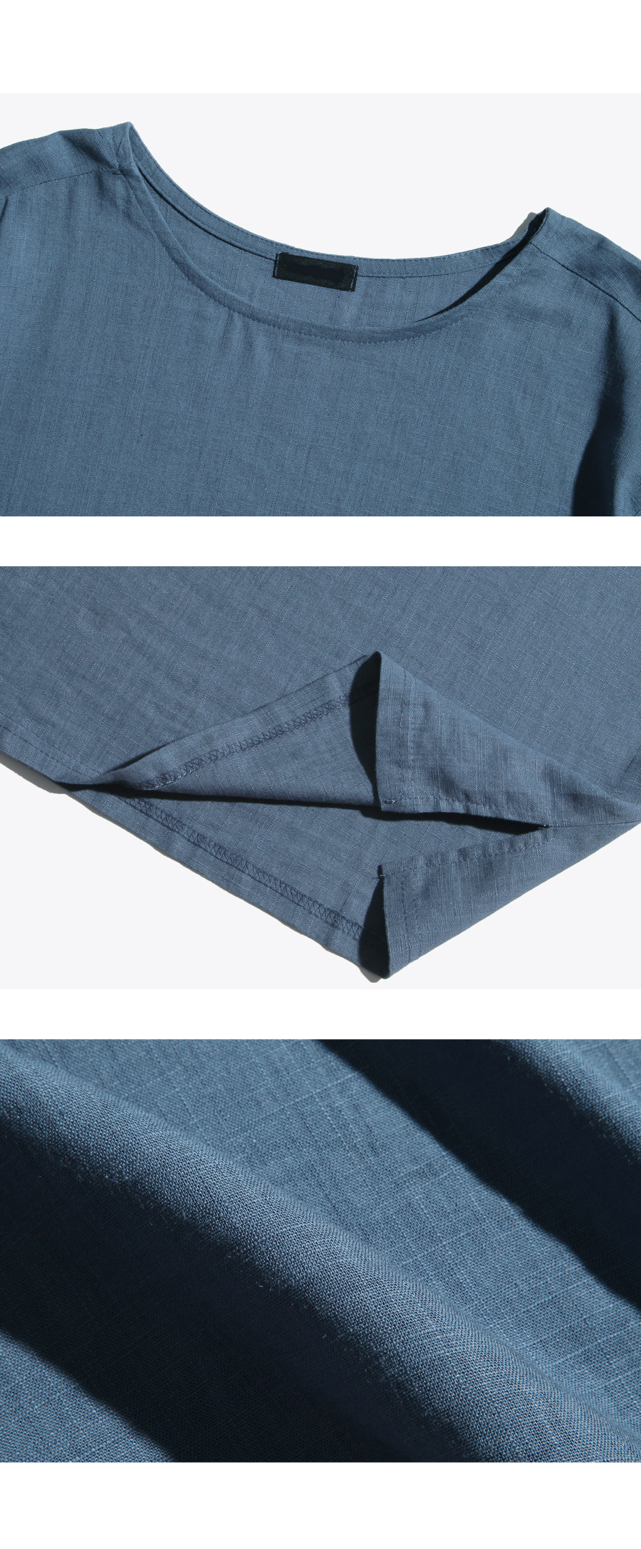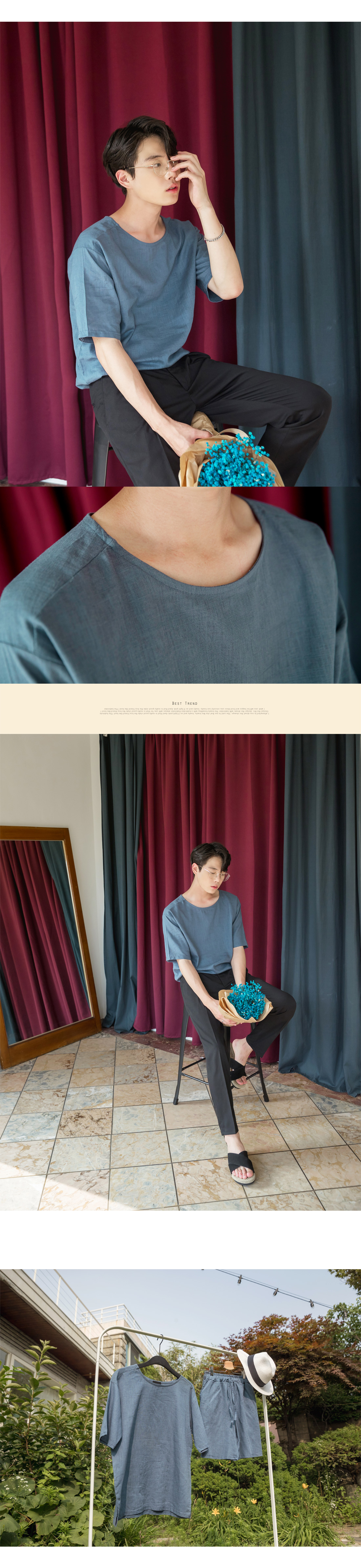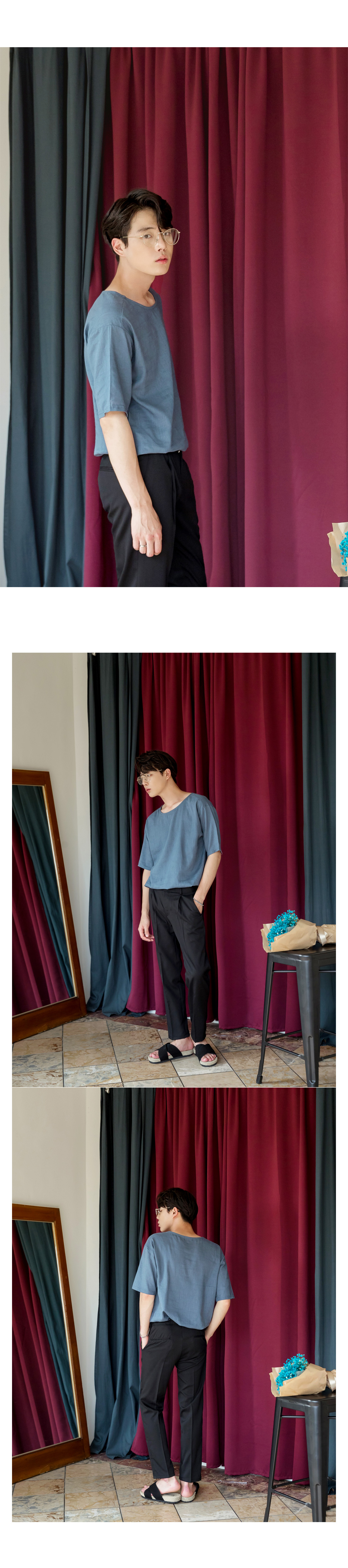 -린넨 라운드 반팔 티셔츠입니다.