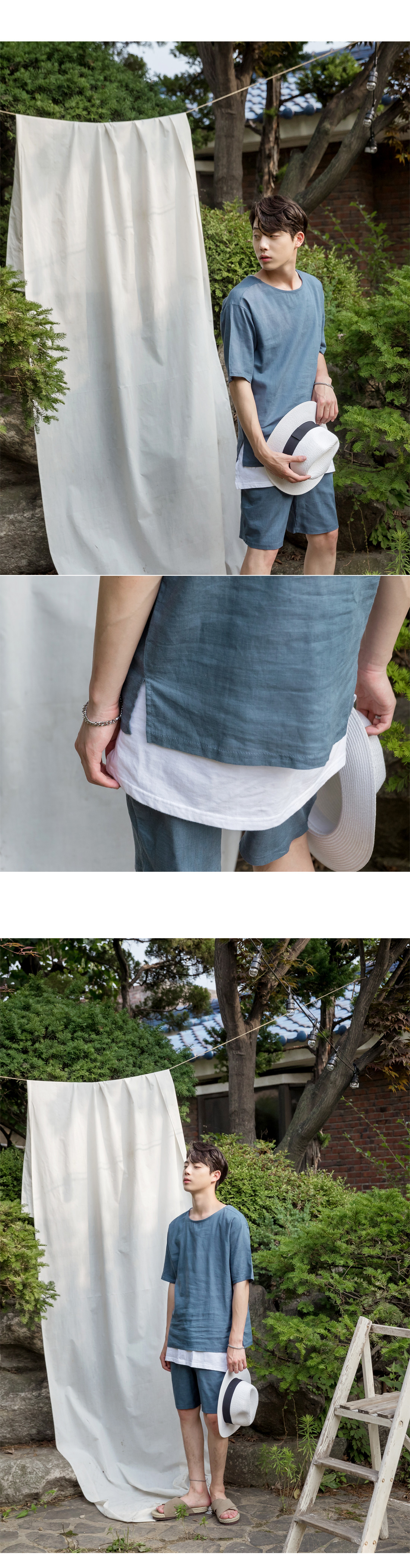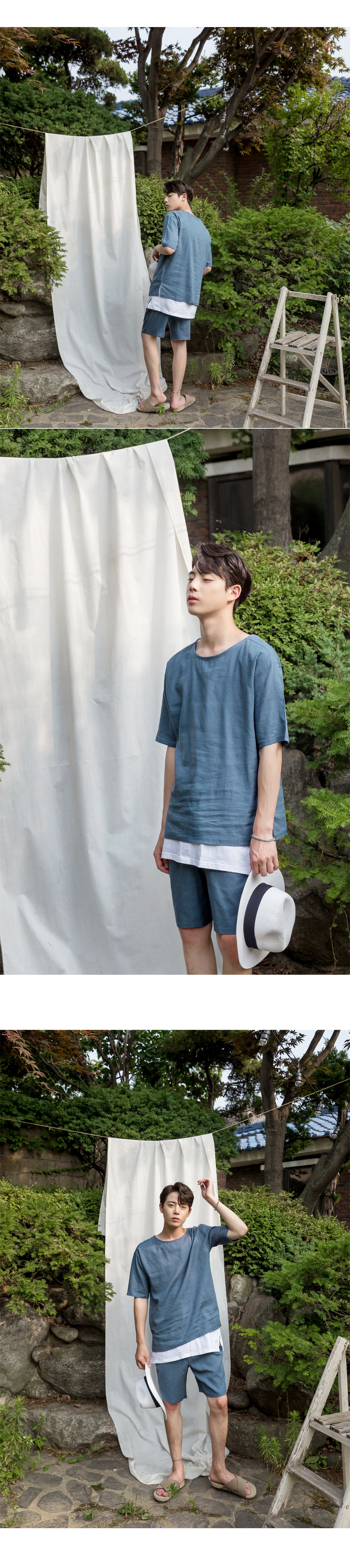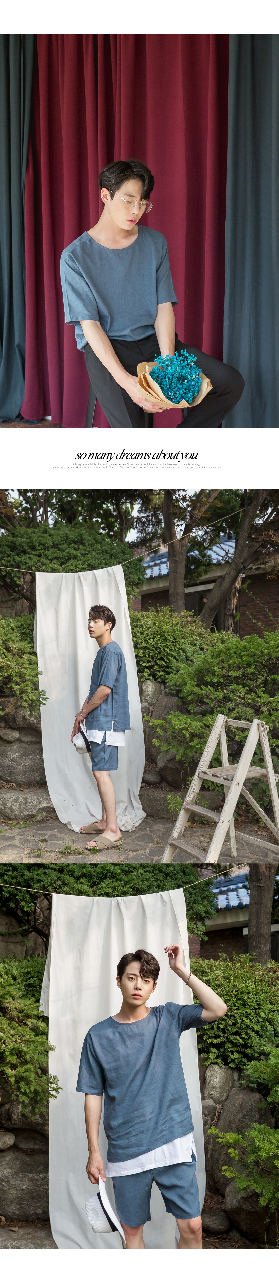 -린넨 라운드 반팔 티셔츠입니다.
