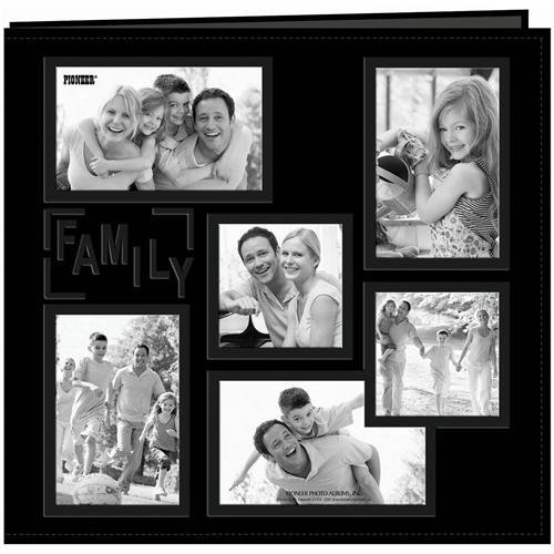 Pioneer 12-Inch by 12-Inch Collage Frame Embossed "Family" Sewn Leatherette Cover Memory Book, Black